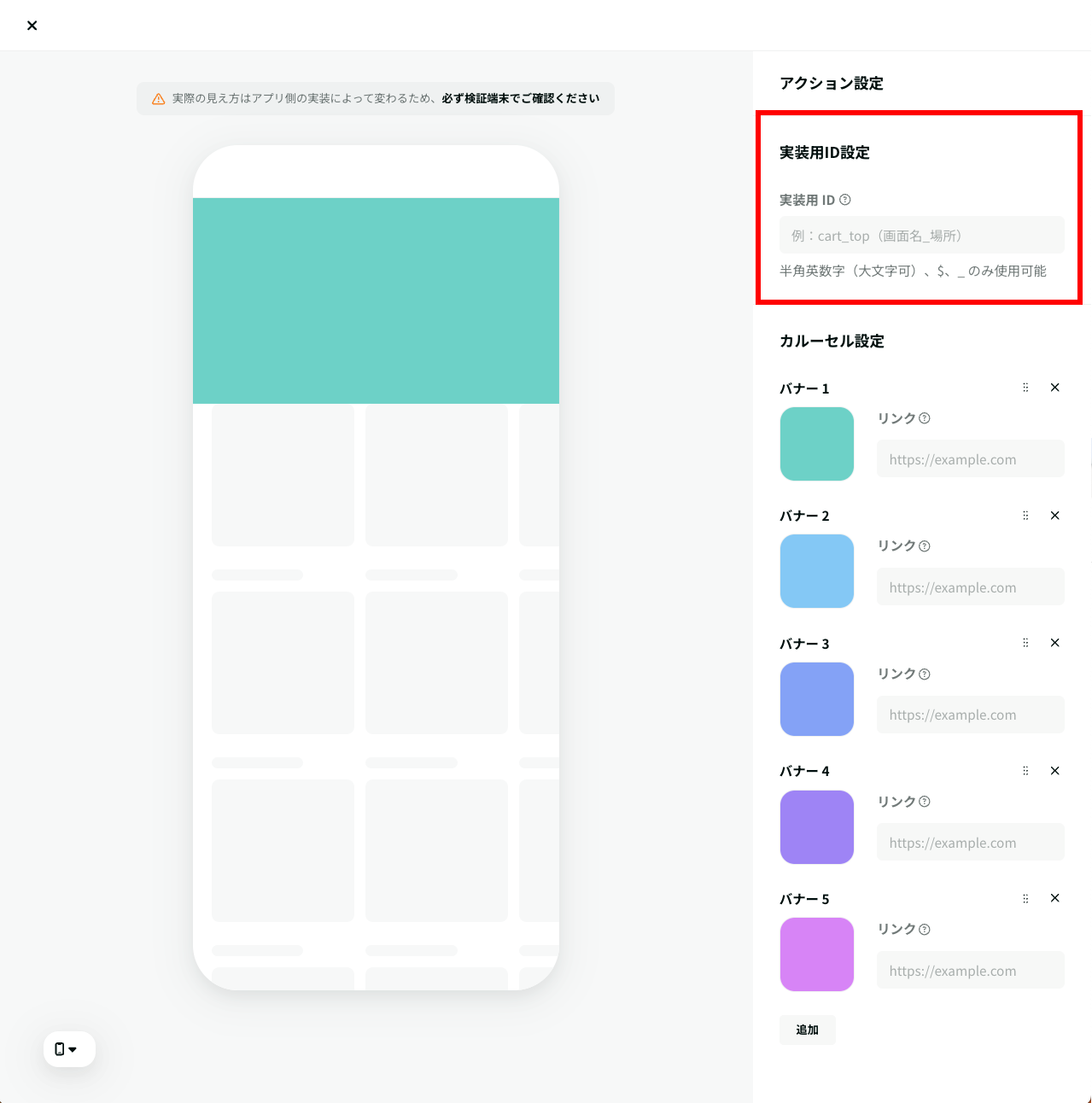 設定値配信 新テンプレート (β)は、設定値配信でのバナーやカルーセル等のユースケースをテンプレート化し、専用のエディタを用意したものです。